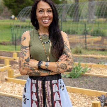 Angie Comeaux is of Mvskoke, Cherokee, Chahta, and French Creole descent, and belongs to Kvnfvske etvlwv, where she is Nokosvlke clan mother. Angie was born and raised in Bvlbancha, currently living and farming in south Alabama, in her ancestral Mvskoke homelands. She is a founding member of both Bvlbancha Collective and Okla Hina Ikhish Holo, two Indigenous Southeastern femme and non-binary collectives working in mutual aid, medicine, and food sovereignty, and rebuilding ancestral trade routes. Angie is a seed grower, was student in the inaugural cohort of the Ira Wallace Seed School, and is a volunteer on a number of committees for the Gulf South Heritage Seed Project. In 2023 Angie completed Clinical Herbal Practitioner school with the Appalachian Center for Natural Health and 4th year of herbal medicine courses. Angie was recently awarded the 2024 Environmental Leader Award by the Center for Rural Affairs. She was also a 2022-2023 fellow with the Soul Fire Farm Braiding Seeds fellowship, and now works as a Co-Director for the Braiding Seeds Fellowship.