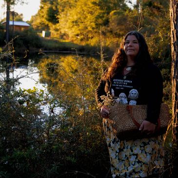 Angie Comeaux is of Mvskoke, Cherokee, Chahta, and French Creole descent, and belongs to Kvnfvske etvlwv, where she is Nokosvlke clan mother. Angie was born and raised in Bvlbancha, currently living and farming in south Alabama, in her ancestral Mvskoke homelands. She is a founding member of both Bvlbancha Collective and Okla Hina Ikhish